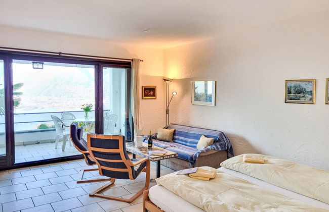 Apartamento de 1 quarto em Gambarogno com piscina e jardim