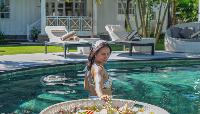 Peça o seu cocktail favorito no bar junto à piscina.
