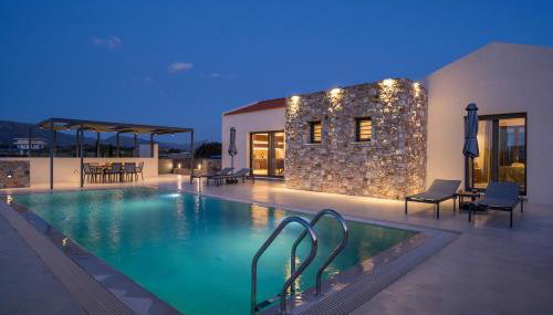 Villa Afeidia situa-se em Tersanas e providencia um terraço com vista do mar e da montanha, assim como piscina exterior aberta todo o ano, centro de fitness e sauna. O alojamento apresenta uma piscina privada, jardim, comodidades para churrascos, acesso Wi-Fi gratuito e estacionamento privado gratuito.