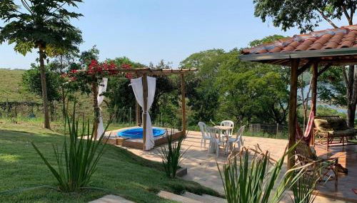 Apresentando um jardim, um restaurante e comodidades para churrascos, Chalé com Jacuzzi Vista do Lago fornece acomodações em Alexânia com acesso Wi-Fi gratuito e vista do lago.