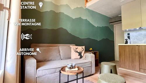 Este apartamento com um terraço e vista da montanha apresenta 2 quartos, uma sala de estar, uma televisão de ecrã plano, uma cozinha equipada com frigorífico e máquina de lavar louça, e 1 casa de banho com chuveiro.