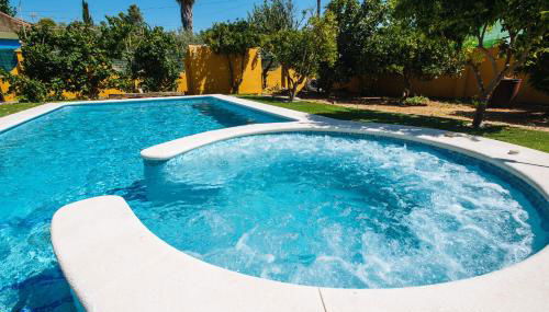 Apresentando uma piscina exterior, um jardim e um terraço, Villa Oasis Los Naranjos con jacuzzi 15 min Sevilla apresenta acomodações em Almensilla com acesso Wi-Fi gratuito e vista da piscina. Apresentando estacionamento privado gratuito, esta casa de férias está numa área onde os hóspedes podem desfrutar de atividades como caminhadas e ténis de mesa.