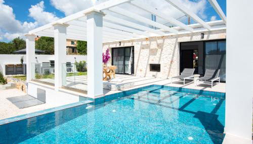 Apresentando uma piscina exterior sazonal, um centro de fitness e um jardim, LUZ BLANCA Rooftop seaview villa fornece acomodações em Agios Leon com acesso Wi-Fi gratuito e vista do mar. Apresentando estacionamento privado gratuito, esta villa está numa área onde os hóspedes podem desfrutar de atividades como caminhadas e ciclismo.