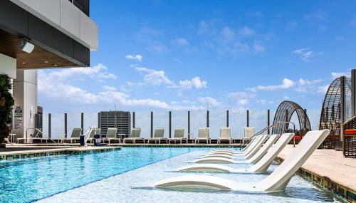 No centro de Atlanta, a 4 minutos a pé de College Football Hall of Fame e 600 m de Parque Olímpico Centennial, Margaritaville Vacation Club Atlanta Studio Apartment with Resort Access dispõe de acesso Wi-Fi gratuito, um centro de fitness e ar condicionado. Com vista da cidade, este alojamento dispõe de um pátio e piscina.