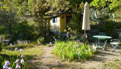 Apresentando um jardim, um terraço e comodidades para churrascos, Roulotte dispõe de acomodações em Aubres com acesso Wi-Fi gratuito e vista da montanha.