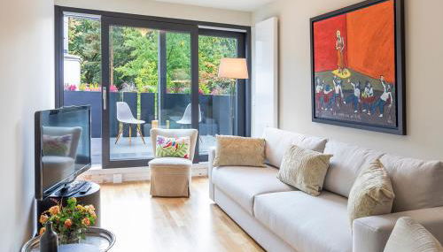 Este apartamento com um terraço e vista do jardim tem 1 quarto, uma sala de estar, uma televisão de ecrã plano, uma cozinha equipada com máquina de lavar louça e forno, e 1 casa de banho com chuveiro. Toalhas e roupa de cama são providenciadas neste apartamento.