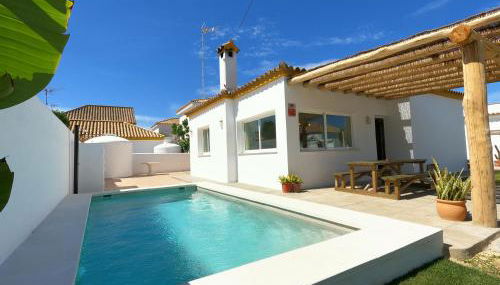 Preciosa Villa Independiente 100metros playa 10personas, Free Parking, Fully renovated Now localiza-se em Los Caños de Meca e fornece acesso Wi-Fi gratuito, uma piscina exterior, um jardim e um salão partilhado.