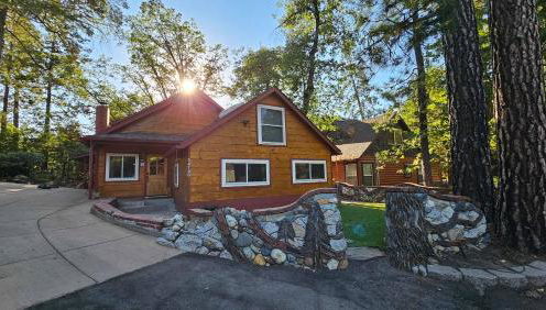 Knotty Pine Cabin with Artisan Stone Patio - Walk to Bass Lake