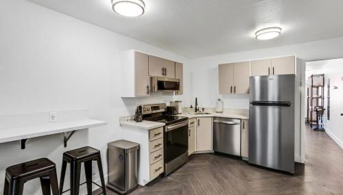 Este apartamento tem 1 quarto, uma cozinha com frigorífico e máquina de lavar louça, e 1 casa de banho com chuveiro, produtos de higiene pessoal gratuitos e máquina de lavar roupa. Toalhas e roupa de cama são providenciadas neste apartamento.