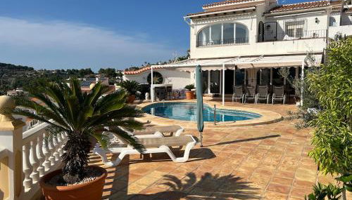Apresentando uma piscina exterior, um jardim e um terraço, Large villa, great view with private swimming pool dispõe de acomodações em Cumbre del Sol com acesso Wi-Fi gratuito e vista da montanha. Situado a 18 km de La Sella Golf, o alojamento fornece um bar e estacionamento privado gratuito.