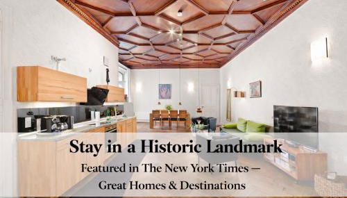 The apartment’s fully equipped kitchen is ideal for preparing meals at home. There are numerous cafés, bars and restaurants within 500 metres of 1,399 sq ft Historic Landmark, Checkpoint Charlie Charlie.