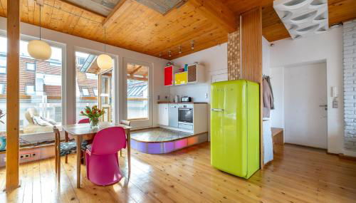 Top floor Penthouse with Garden localiza-se em Berlim, na região de Berlin Bundesland, e tem uma varanda. O alojamento apresenta um jardim, um terraço, vistas do jardim e acesso Wi-Fi gratuito em toda a propriedade.