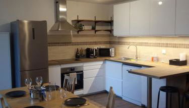 Este apartamento tem 2 quartos, uma sala de estar, uma cozinha totalmente equipada com frigorífico e máquina de café, e 1 casa de banho com chuveiro e produtos de higiene pessoal gratuitos. Toalhas e roupa de cama são providenciadas neste apartamento.
