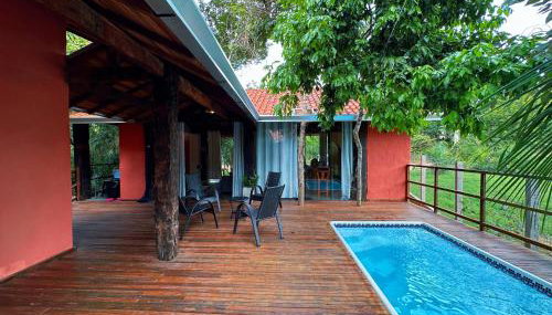 Apresentando vista do jardim, Casa Aroeira 3 quartos3 Banheiros piscina apresenta acomodações com um terraço e varanda, a cerca de 24 km de Gruta do Lago Azul.