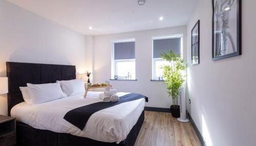 Brand-New Borehamwood 1-Bed, 1-Bath Flat situa-se em Borehamwood, a 5,9 km de Estação de Metro de Stanmore e 6,7 km de Estação de Metro de Edgware, e providencia acomodações com acesso Wi-Fi gratuito e uma televisão de ecrã plano.