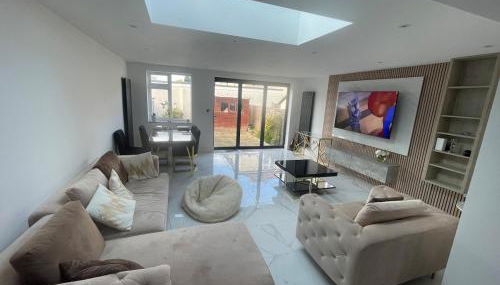 Cosy 4 bedroom house in borehamwood with large onsite parking and large beds encontra-se em Borehamwood, a 7,5 km de Estação de Metro de Stanmore, 11 km de Estação de Metro de Kenton e 12 km de Estação de Metro de Preston Road. O alojamento está a 6,4 km de Estação de Metro de Edgware, e os hóspedes beneficiam de acesso Wi-Fi gratuito e estacionamento privado disponível no local.