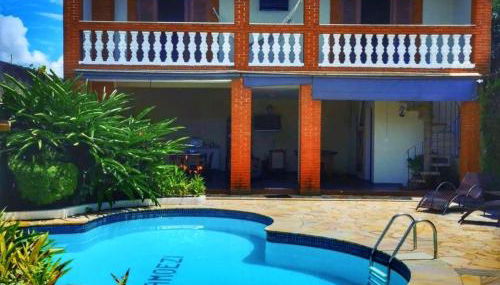 Apresentando um jardim, piscina exterior aberta todo o ano e vista da piscina, Estação Brotense - Casa com piscina e fogueira exclusiva localiza-se em Brotas. Este alojamento dispõe de uma varanda, uma mesa de bilhar, estacionamento privado gratuito e acesso Wi-Fi gratuito.