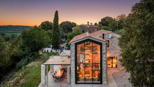 Villa La Vinella with heated pool localiza-se em Buje e providencia um terraço com vista da montanha e da piscina, assim como piscina exterior aberta todo o ano, sauna e banheira de hidromassagem.