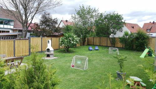 Ferienwohnung-Mina nähe Günzburg und Freizeitpark, Wohnung 1 disponibiliza um terraço e um parque infantil para uso dos hóspedes.