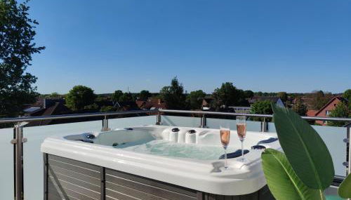 Apresentando um terraço e comodidades para churrascos, Wellness Penthouse - Sauna und Ganzjahres Whirlpool dispõe de acomodações em Burgwedel com acesso Wi-Fi gratuito e vista do jardim. Situado a 23 km de Museu Bomann, o alojamento apresenta bicicletas gratuitas e estacionamento privado gratuito.