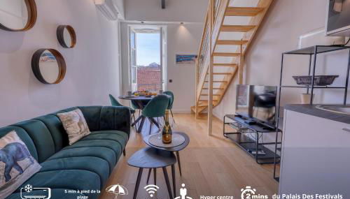 Com uma localização conveniente no centro de Cannes, Loft Croisette Standing Presta dispõe de varanda. O alojamento está a 4 minutos a pé de Plage du Palais des Festivals e apresenta acesso Wi-Fi gratuito em toda a propriedade.