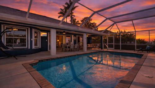 A cerca de 35 km de Fishermen's Village e 39 km de Sanibel Chamber of Commerce, Sunny 4BR with Screened in Pool and Lanai apresenta acesso Wi-Fi gratuito e um jardim. O alojamento está a 7,1 km de Cape Coral Sports Complex e 18 km de Dolphin Marina.