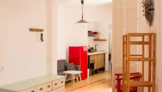 Com acesso direto a uma varanda, este apartamento com ar condicionado tem 1 quarto e uma cozinha totalmente equipada.