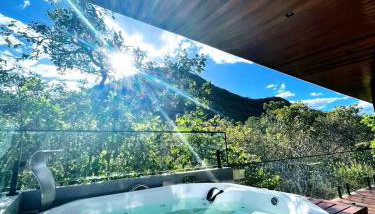 Casa Vértize, uma casa de alto padrão com Spa Hidro e vista espetacular oferece aos hóspedes a oportunidade de desfrutar de uma banheira de hidromassagem.