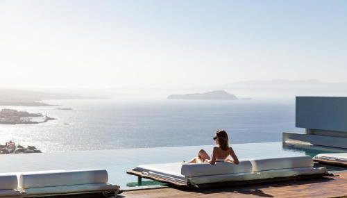 Cavo Dago localiza-se em Chania e providencia um terraço com vista do mar e da piscina, assim como piscina exterior aberta todo o ano, centro de fitness e sauna.