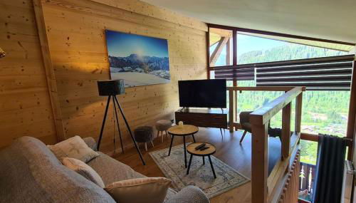 Apresentando vista da montanha, Les Vues de Lily - Châtel apresenta acomodações com um terraço e varanda, a cerca de 37 km de Clube de Golfe Evian Masters.