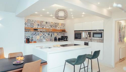 Esta casa de férias tem 5 quartos, uma sala de estar, uma cozinha totalmente equipada com frigorífico e máquina de café, e 2 casas de banho com chuveiro e produtos de higiene pessoal gratuitos. Toalhas e roupa de cama são providenciadas nesta casa de férias.