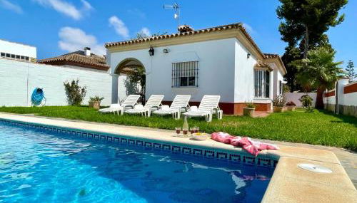 Em Chiclana de la Frontera, apenas a 7 km de Clube de Golfe Novo Sancti Petri, Chalet Manku dispõe de acomodações com uma piscina exterior, um terraço e acesso Wi-Fi gratuito. O alojamento apresenta uma piscina privada, jardim e estacionamento privado gratuito.