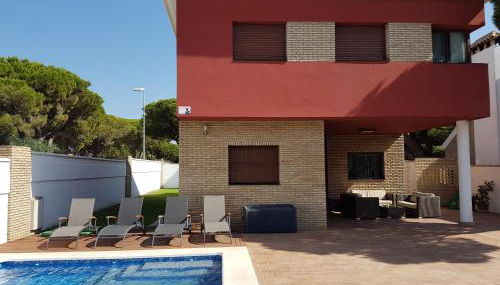 Apresentando uma piscina exterior, um jardim e um terraço, Chalet Nora fornece acomodações em Chiclana de la Frontera com acesso Wi-Fi gratuito e vista da cidade. Este alojamento em frente à praia dispõe de uma varanda e estacionamento privado gratuito.
