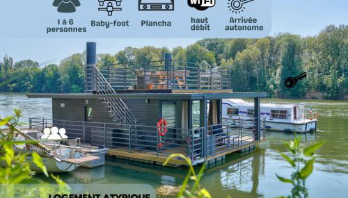 Apresentando vista da cidade, HouseBoat - Une maison sur l'eau fornece acomodações com varanda e chaleira, a cerca de 13 km de Campo de Golfe de Saint-Germain. Apresentando um terraço, esta casa de férias está numa área onde os hóspedes podem desfrutar de atividades como caminhadas, pesca e ciclismo.
