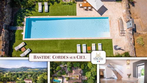 Apresentando uma piscina exterior sazonal, um jardim e um terraço, Bastide de Cordes sur Ciel - Piscine chauffée & Parc dispõe de acomodações em Cordes-sur-Ciel com acesso Wi-Fi gratuito e vista da piscina. Situado a 26 km de Museu Toulouse-Lautrec, o alojamento fornece um bar e estacionamento privado gratuito.