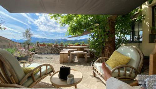 Apresentando vista da cidade em Crest, Maison familiale, coeur de ville & nature apresenta acomodações, um jardim, um salão partilhado, um terraço, um campo de ténis e comodidades para churrascos. O acesso Wi-Fi gratuito é disponibilizado em toda a propriedade.