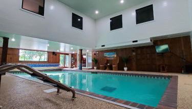 Whitefish Lake Home with Heated Indoor Pool oferece aos hóspedes a oportunidade de desfrutar de uma piscina interior.
