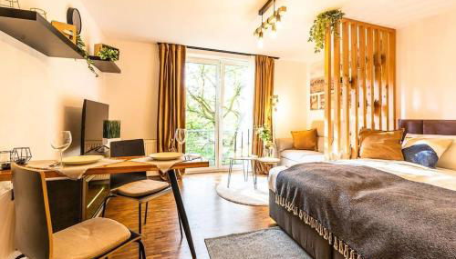 Este apartamento tem 1 quarto, uma televisão de ecrã plano com canais por cabo, uma cozinha equipada com frigorífico e micro-ondas, uma máquina de lavar roupa e 1 casa de banho com chuveiro. Toalhas e roupa de cama são providenciadas neste apartamento.