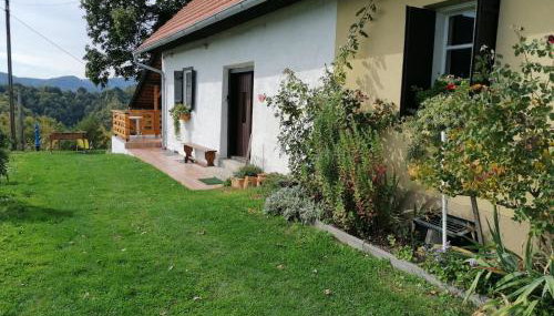 Apresentando um jardim, um terraço e comodidades para churrascos, Rural house above the forest fornece acomodações em Gornja Voća com acesso Wi-Fi gratuito e vista da montanha.