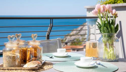 O alojamento disponibiliza terraço com vista do mar aos hóspedes, assim como uma área de estar, uma televisão de ecrã plano, uma cozinha totalmente equipada com um frigorífico, uma máquina de lavar louça, e uma casa de banho privativa com bidé e produtos de higiene pessoal gratuitos. Um forno e placa de fogão também estão disponíveis, assim como uma máquina de café e uma chaleira.