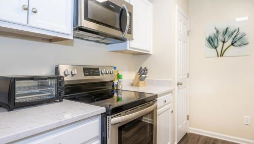 Serine Space - Townhome - King Bed - Duke - Long Term Stays, um alojamento com um terraço, encontra-se em Durham, a 29 km de Centro Comercial Crabtree Valley Mall, 29 km de Arena PNC e 31 km de Museu de Arte da Carolina do Norte. O alojamento com ar condicionado está a 6,5 km de Universidade Duke, e os hóspedes beneficiam de estacionamento privado disponível no local e acesso Wi-Fi gratuito.