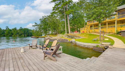 Em Eclectic, Arcade Cove - Renovated Lake Martin Home with Dock fornece acomodações com um pátio e acesso Wi-Fi gratuito. O alojamento apresenta vistas do lago.