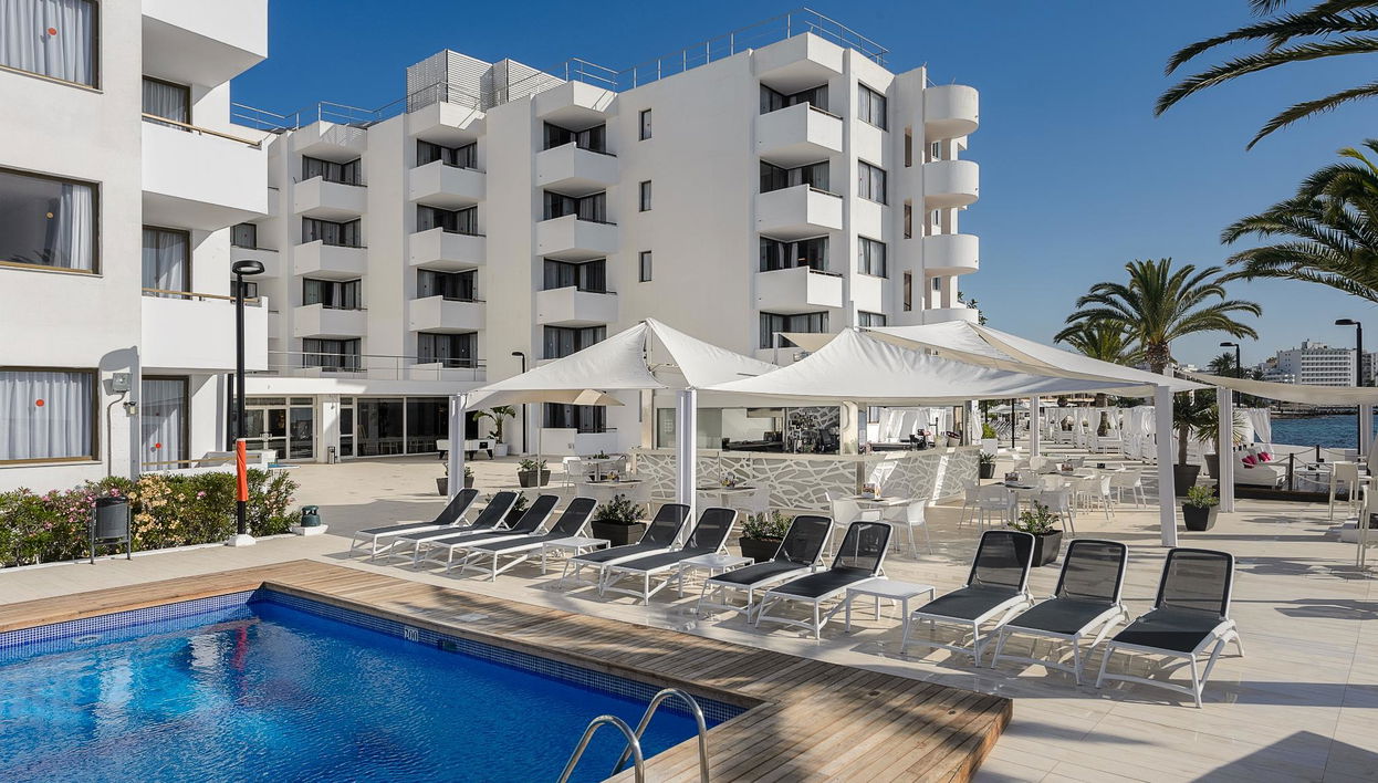 O aparthotel está localizado em frente à praia, entre Playa d'en Bossa e o centro da cidade. O aeroporto fica a 15 minutos. Os apartamentos de 1 e 2 quartos estão totalmente equipados com ar condicionado, casa de banho com secador de cabelo, frigorífico, televisão de plasma e cofre gratuito. A piscina tem vistas magníficas para o mar e uma área com camas balinesas (taxa extra).