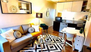 Este apartamento tem 1 quarto, uma sala de estar, uma cozinha totalmente equipada com frigorífico e máquina de café, e 1 casa de banho com chuveiro. Toalhas e roupa de cama são providenciadas neste apartamento.
