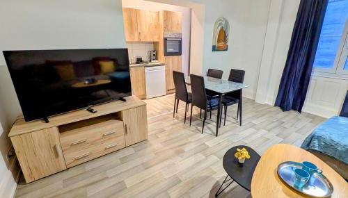 Este apartamento tem 1 quarto, uma sala de estar, uma cozinha totalmente equipada com frigorífico e máquina de café, e 1 casa de banho com chuveiro e um secador de cabelo. Toalhas e roupa de cama são providenciadas neste apartamento.