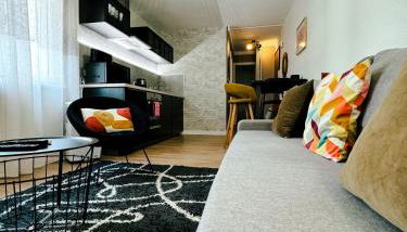 Este apartamento com 1 quarto dispõe de televisão de ecrã plano, ar condicionado e uma sala de estar.