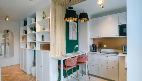 Este apartamento tem 1 quarto, uma sala de estar, uma cozinha totalmente equipada com frigorífico e máquina de café, e 1 casa de banho com chuveiro e produtos de higiene pessoal gratuitos. Toalhas e roupa de cama são providenciadas neste apartamento.
