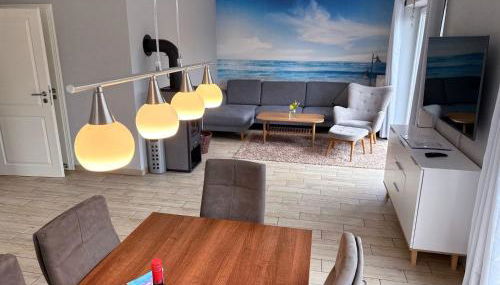 Apresentando uma sauna, "Bauernhof-Claussen", Haus Nordlicht localiza-se em Fehmarn. Este alojamento em frente à praia dispõe de um terraço, estacionamento privado gratuito e acesso Wi-Fi gratuito.