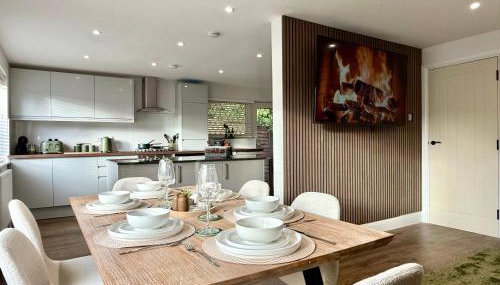 Em Ferndown, apenas a 13 km de Centro Internacional de Bournemouth, Winter Getaway - Luxury Bungalow w Games Room dispõe de acomodações com um jardim, um terraço, um bar e acesso Wi-Fi gratuito. Com estacionamento privado gratuito, o alojamento está a 16 km de Porto de Poole e 32 km de Monkey World.