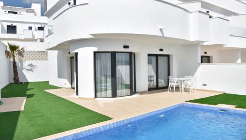 Apresentando uma piscina exterior, um jardim e um terraço, PANORAMISCH modern vakantiehuis in Finestrat bij Benidorm met 3 slaapkamers, gelegen op de 1ste lijn met privézwembad en omheinde privétuin, zicht op zee, de bergen met 'Kilómetro Vertical del Puig Campana' en op de skyline van Benidorm City en Finestrat fornece acomodações em Finestrat com acesso Wi-Fi gratuito e vista da cidade.